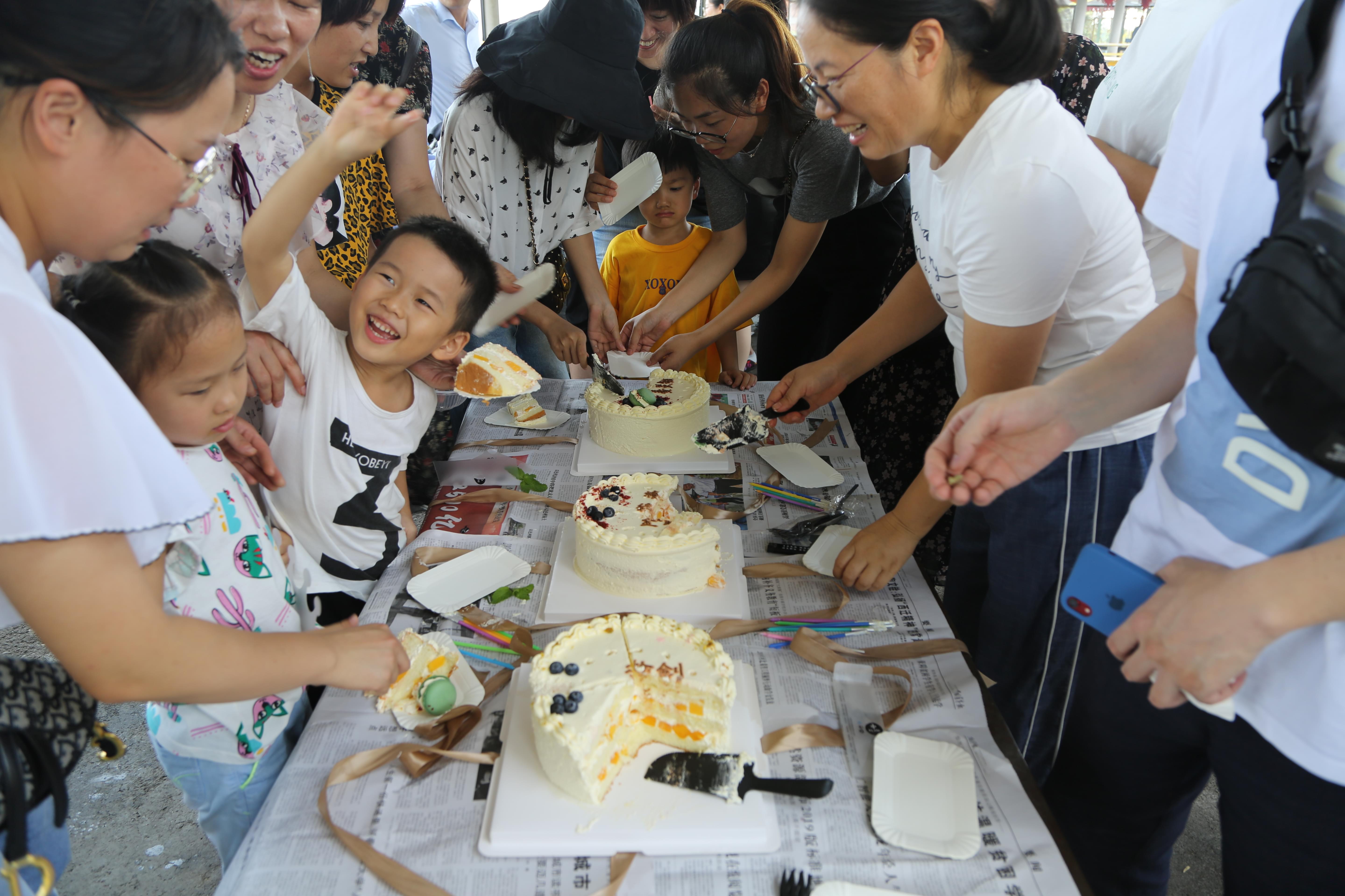 ? ? 吃飽喝足之余,小朋友們四處亂竄,興奮不已,大人們吹著涼風(fēng)坐著聊天游戲,額外的驚喜也隨之開啟。九月份,集團本部共有7位同事生日,總裁辦借由此次活動,為他們準(zhǔn)備了三個蛋糕舉辦了一場特殊的室外生日會,在場的同事為他們共唱生日歌,送上集體的美好祝福。