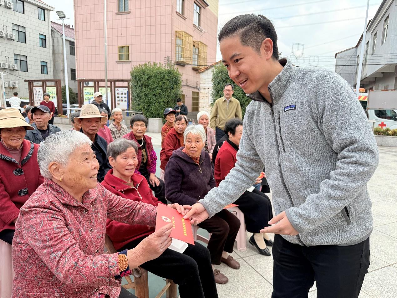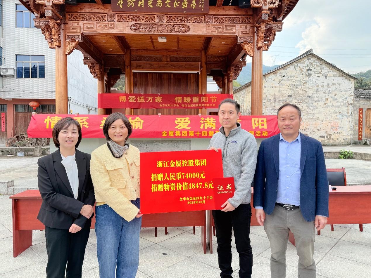 文化舞臺(tái)下,紅底黃字的“重陽(yáng)慰問(wèn)”橫幅早早就掛了起來(lái);辦公樓前,一袋袋米油碼得整整齊齊志愿者們忙忙碌碌穿梭其間,熟絡(luò)地給老人們剪指甲、梳頭發(fā)、嘮家常——1027日上午,金東區(qū)嶺下鎮(zhèn)摩訶村文化廣場(chǎng)上,洋溢著濃濃的節(jié)日氛圍。2025年重陽(yáng)節(jié)來(lái)臨之際,金廈集團(tuán)總裁傅融率集團(tuán)高層再次走進(jìn)摩訶村,帶著心意,赴這場(chǎng)持續(xù)了14年的“敬老之約”。